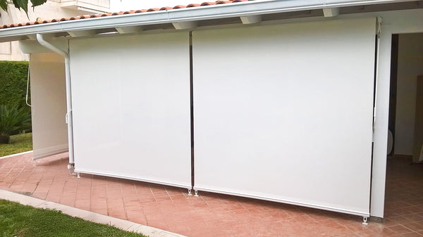 Tenda a caduta mod 3000 con azionamento ad arganello, installabile sia a soffitto che a parete.