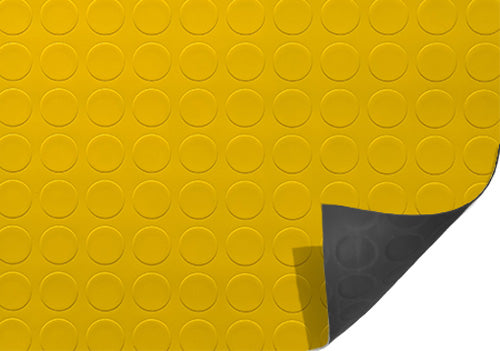 Pavimento a rotoli in PVC multistrato con superficie in rilievo a bolle.