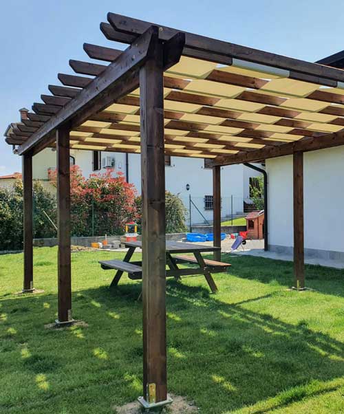 Si consiglia di fissare le fasce alle estremità della struttura con 2 bacchette di 4 cm più larghe e arrotolare su di esse le fasce mantenendo in tensione il telo e fissandole con delle viti. Acquista ora il nostro kit di montaggio Resta Tendaggi