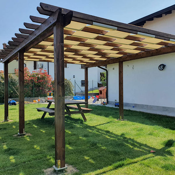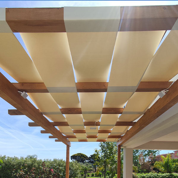 Se decidi di smontare i teli a fine stagione, assicurati che siano perfettamente asciutti prima di riporli. Per evitare segni o pieghe permanenti, arrotola le fasce (magari attorno a un tubo di cartone o plastica) invece di piegarle a quadrato.